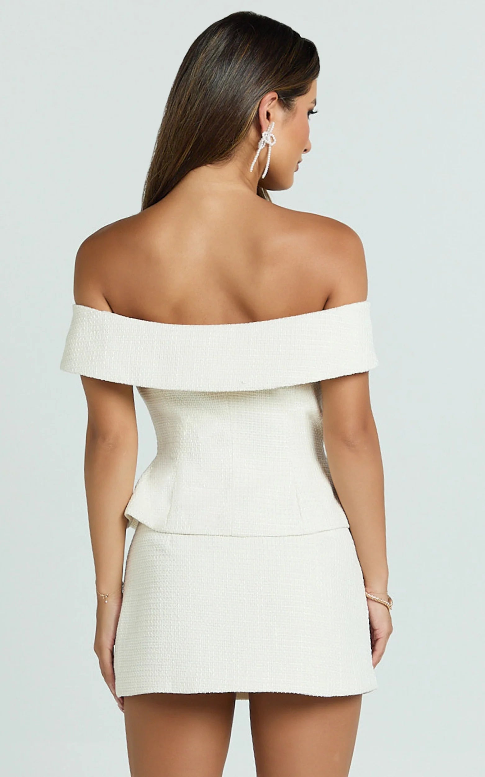Transform your look with the Aleena Skort - a game-changer in women's fashion that perfectly blends the chic appeal of a skirt with the functionality and comfort of shorts. Made from luxuriously textured boucle in a versatile cream shade, this mid-waist, fitted mini skort is the ultimate must-have for any fashion-forward wardrobe.