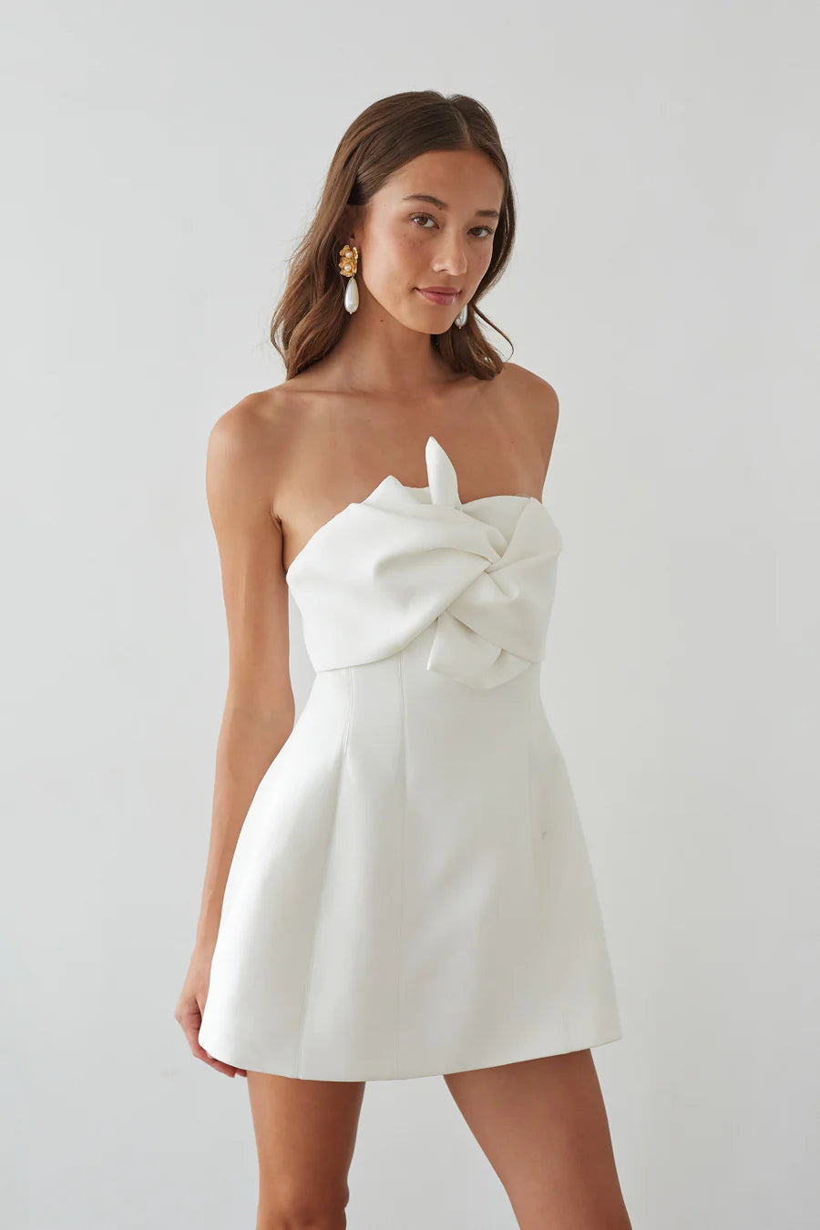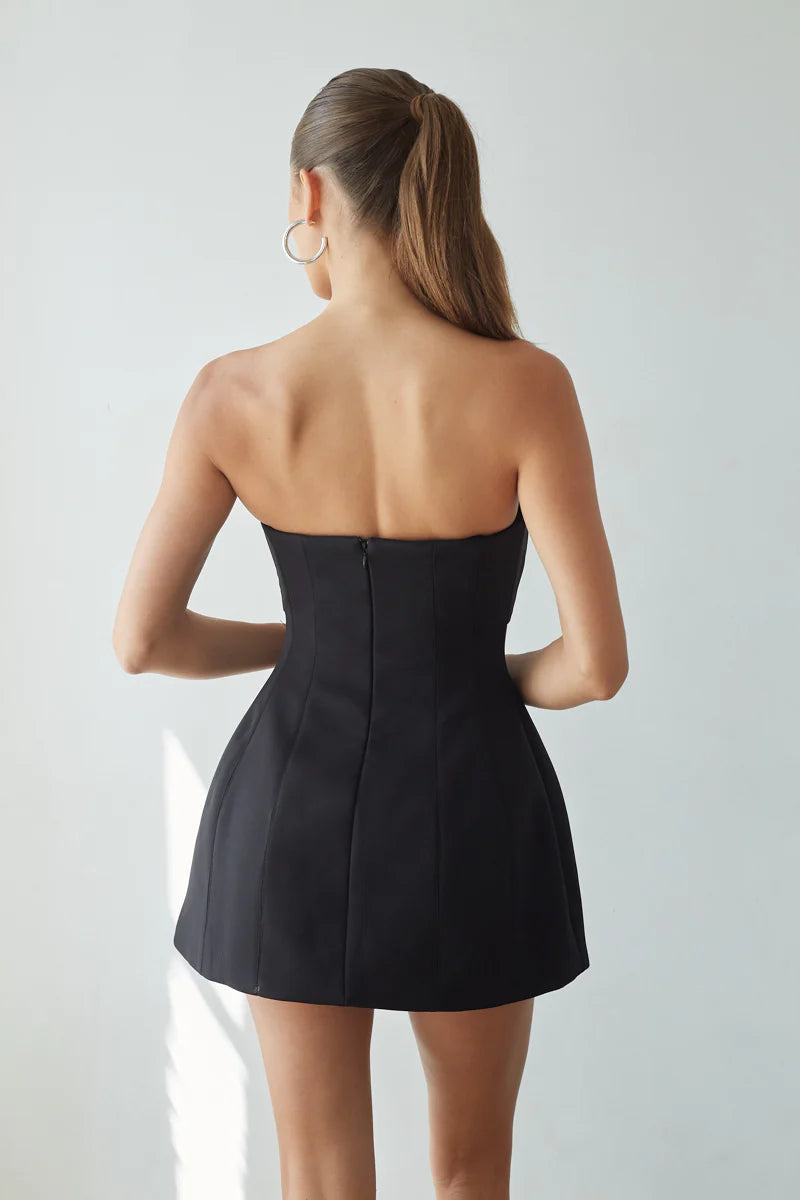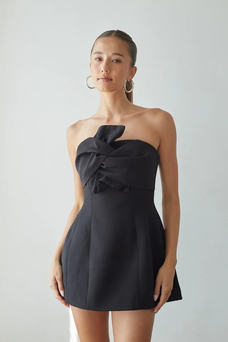 Be strikingly unique in the all-new Alix Strapless Twist Front Bubble Mini Dress. This twist front mini dress strapless design features a flattering strapless neckline, sculpted twist-front detail, and a playful bubble fit-and-flare silhouette that stands out effortlessly. Designed as a mini bubble dress for women who love a statement look, this strapless bubble silhouette mini dress delivers both structure and movement for a confident, party-ready feel.
