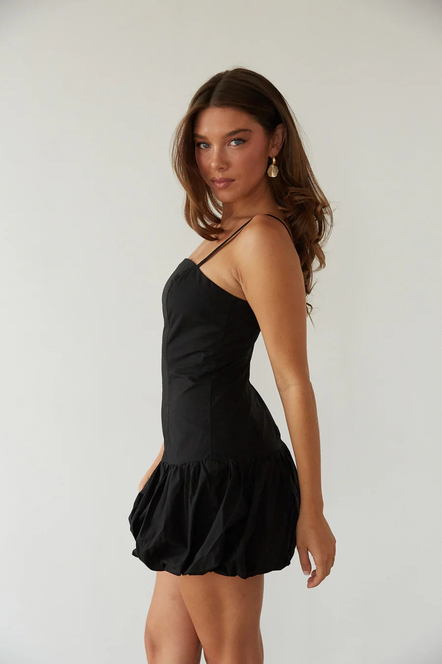 Strike a pose in the Blakely Bubble Mini Dress this Hoco Season! This black mini dress features a classy square neckline, drop waist, and bubble mini skirt! Available in black; style this unique dress with a pair of chic heels!
