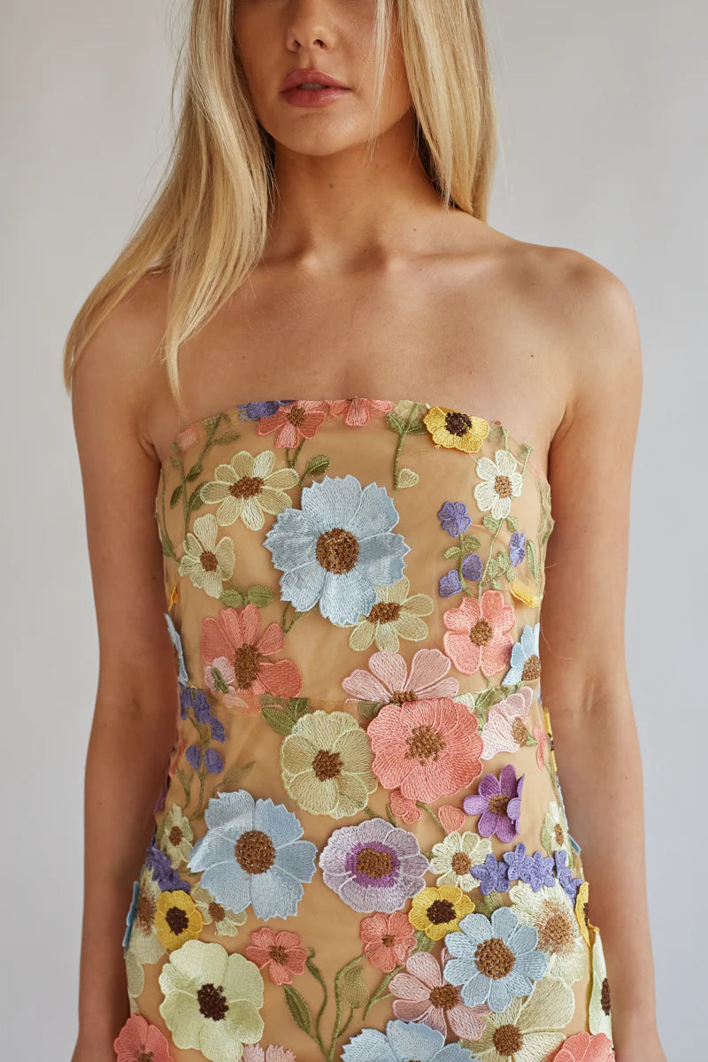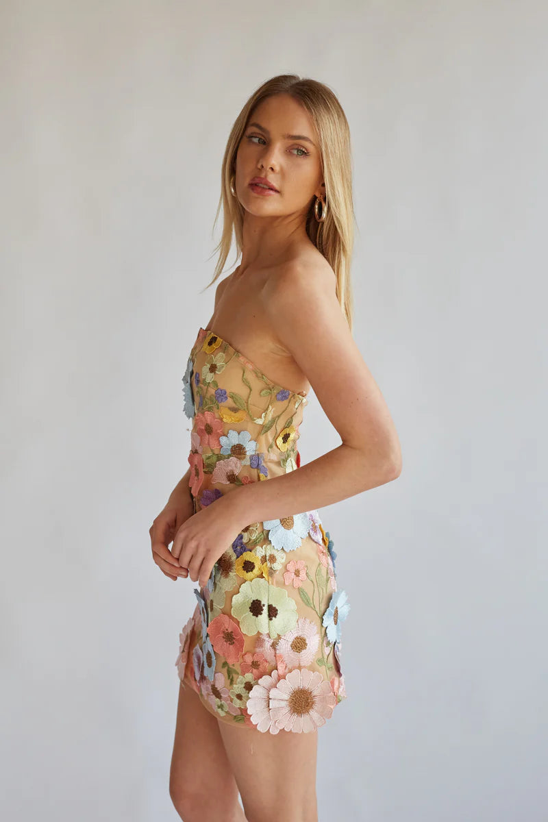 You'll leave them mesmerized when you arrive in the Candice Strapless Floral Lace Mini Dress! This stunning mini dress features a beautiful floral embroidered lace overlay and a straight across strapless neckline. Pair with a chic heel to finish off this unforgettable look!