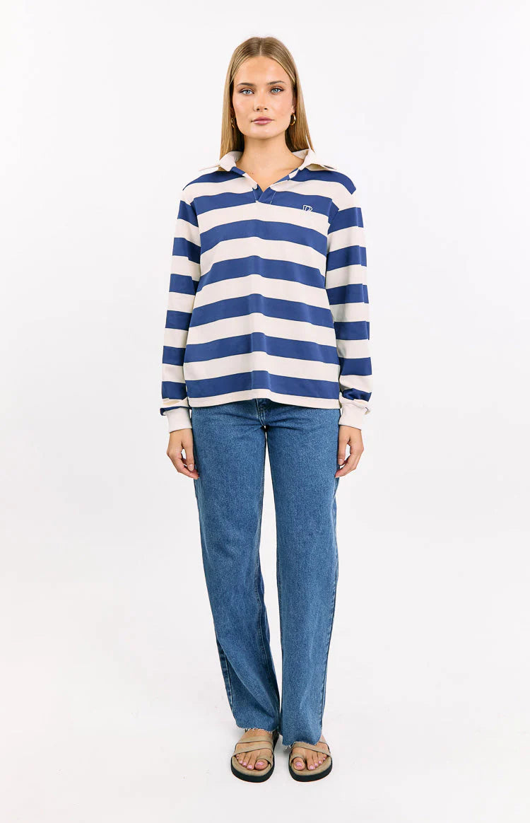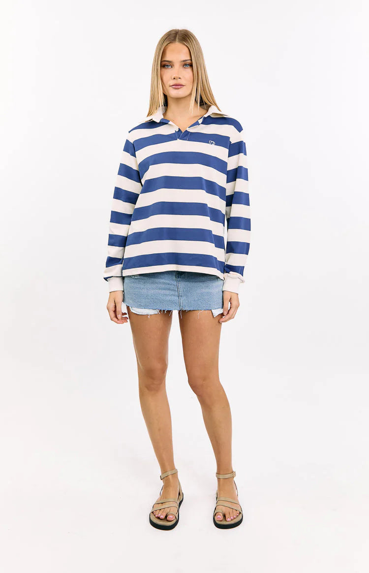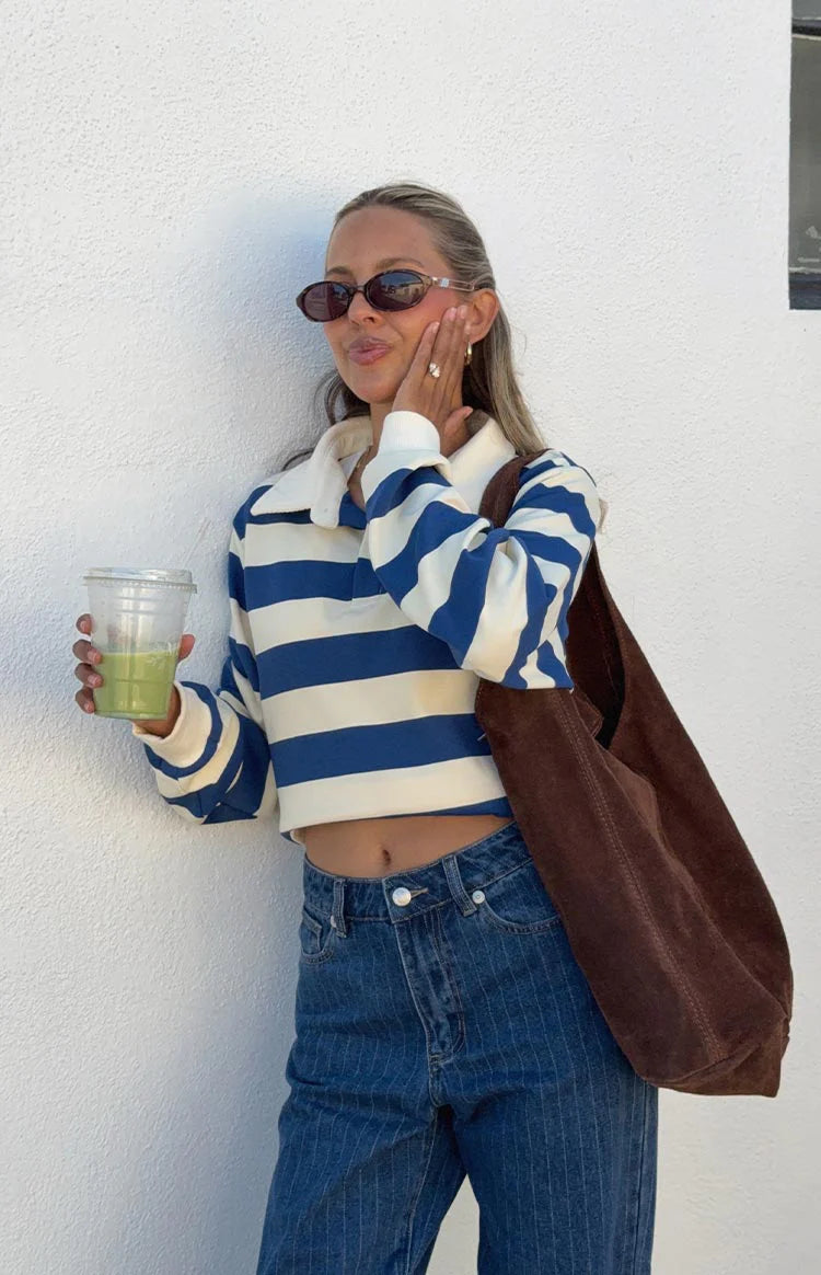 Channel timeless collegiate style in our Carey Blue Striped Jersey, the perfect staple for creating cool and casual everyday looks! This comfortable top is crafted from a classic stripe jersey and features a button-up placket with a collar and a relaxed, easy-to-wear fit. Pair it with your favourite jeans and sneakers for a perfectly preppy and effortlessly stylish outfit!