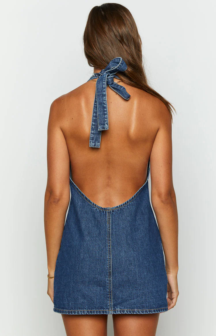 Denim Halter Neck Dress