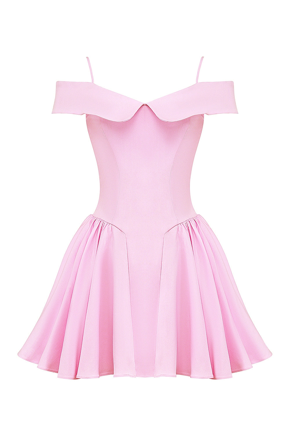 'Elida' is THE dress for romantic date nights and has the prettiest silhouette. The bodice is fitted with our waist cinching corsetry and 'Elida' has an elegant off the shoulder collar. Fitted with layers of fluffy tulle to hold the shape, we love how the voluminous mini skirt is gently gathered to flatter your legs.