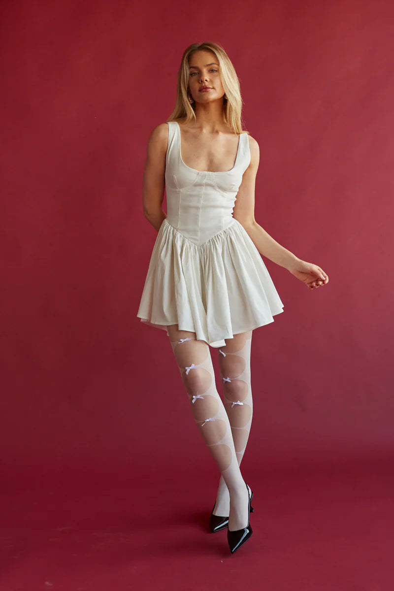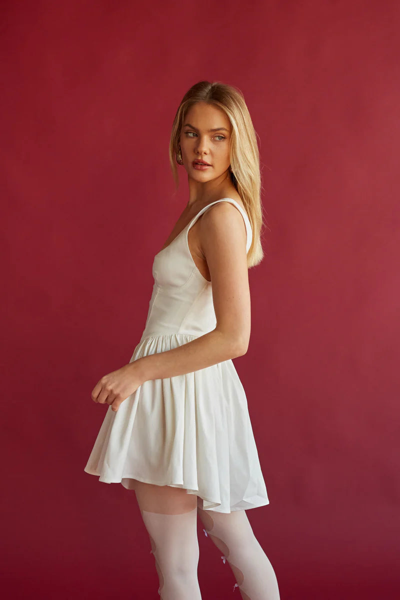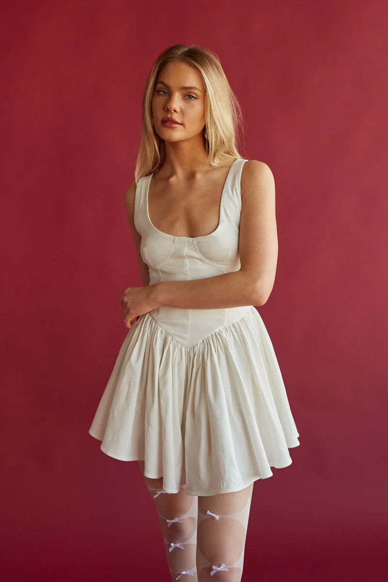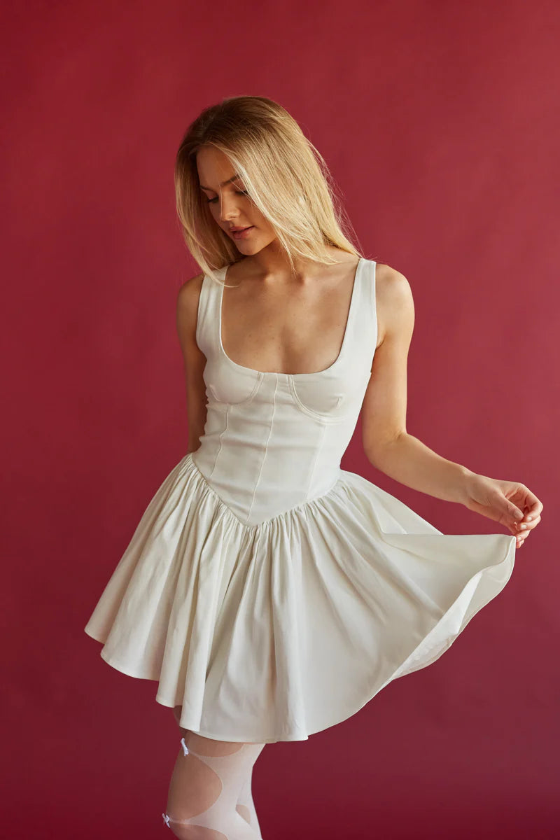 Look chic and timeless in the Delaney Corset Mini Dress! This gorgeous mini dress features a scoop neckline, corset style-bodice and an A-line silhouette. Available in white and red. Finish off the look with your favorite !