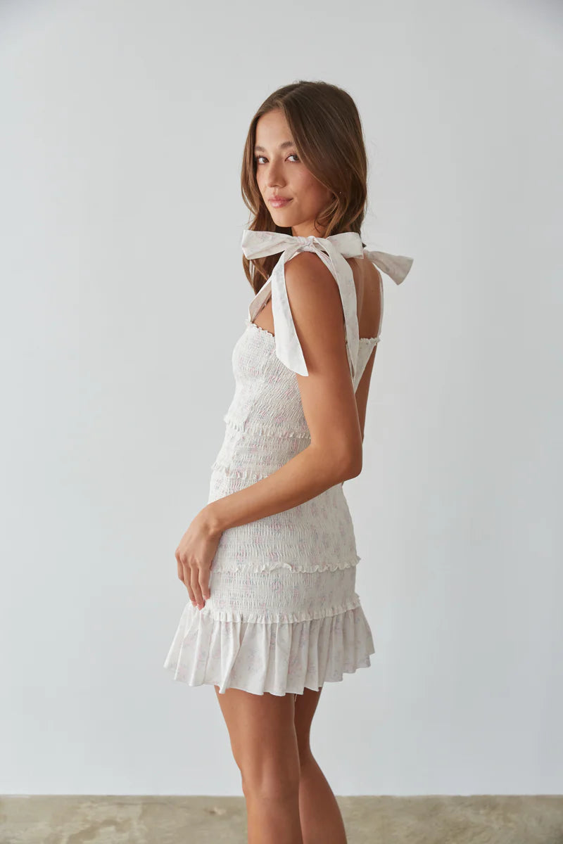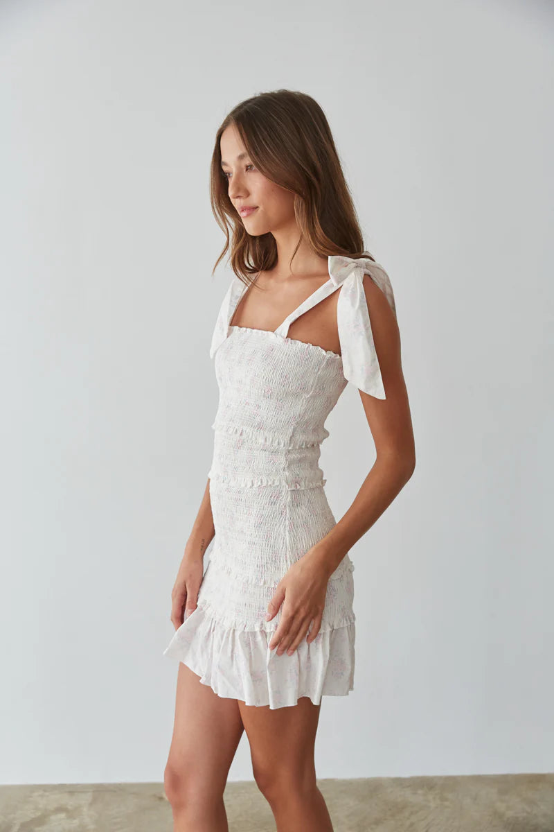 You and the Everleigh Floral Smocked Tie Strap Mini Dress are simply meant to be! This beautiful floral bodycon dress is complete with thick adjustable tie straps, and smocked tiered ruffle details. Available in a pink and blue floral pattern. Pair with the to complete the look!
