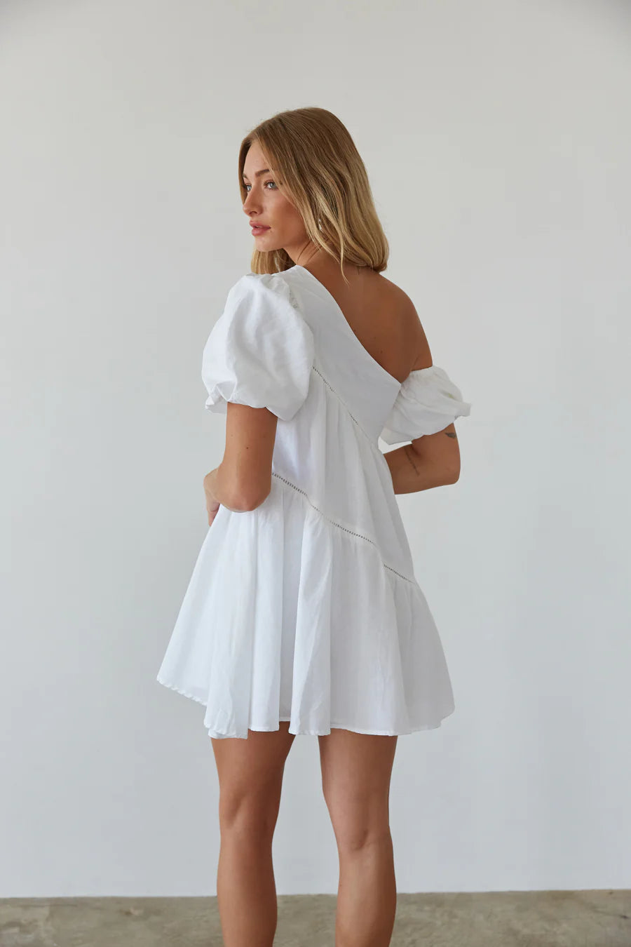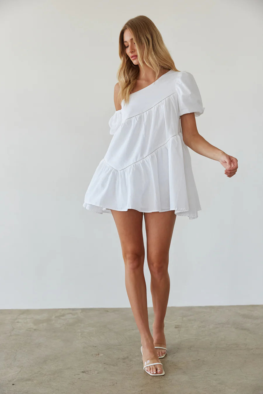 You'll look sweet as can be in the Francesca Puff Sleeve Babydoll Mini Dress! This adorable dress features an asymmetrical neckline with one on and one off the shoulder puff sleeve. Available in black and red. Pair with your favorite accessories to complete the look!