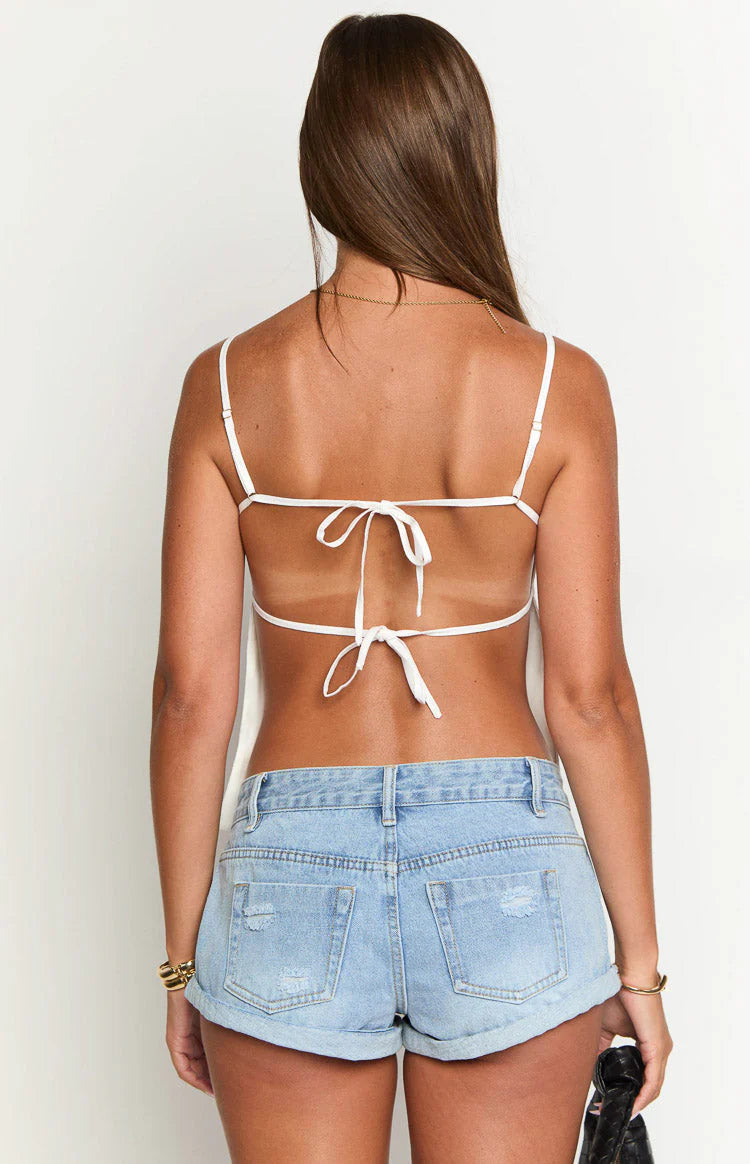 White Linen Blend Open-Back Top