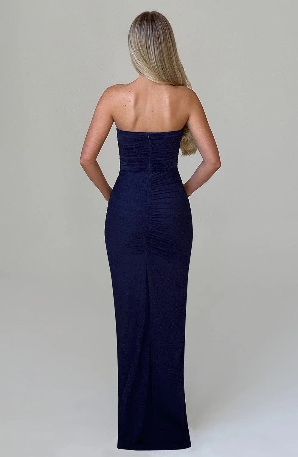 Feel super sculpted in Giovanna, the dreamy maxi that'll make sure you make an entrance. Cut from our premium stretch mesh that gives you the silhouette of dreams, this sleek design has a corset style waist with boning to add shape, pointed cups and a thigh high split.