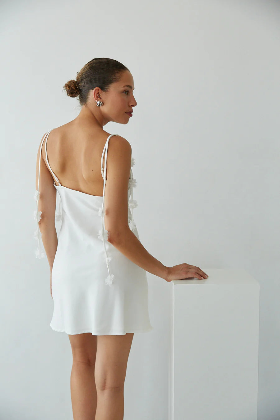 Fresh as a daisy, the Halo Floral Strap Mini Dress is the perfect choice for Sorority Rush! This white mini dress features a slinky a line silhouette, cowl neckline, and whimsical floral embellished straps. Available in white; pair this mini dress with a pair of chic heels to complete the look!