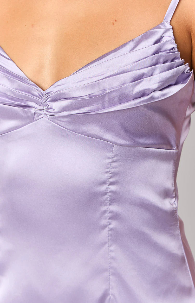 Our Honey Lilac Mini Dress is a beautifully feminine piece, featuring a sweetheart neckline and gathered bust for an effortlessly elegant look! Crafted from lightweight satin with adjustable spaghetti straps, it offers both comfort and a luxurious feel. Ideal for birthday celebrations or your next event. Just add heels and a clutch to radiate elegance!
