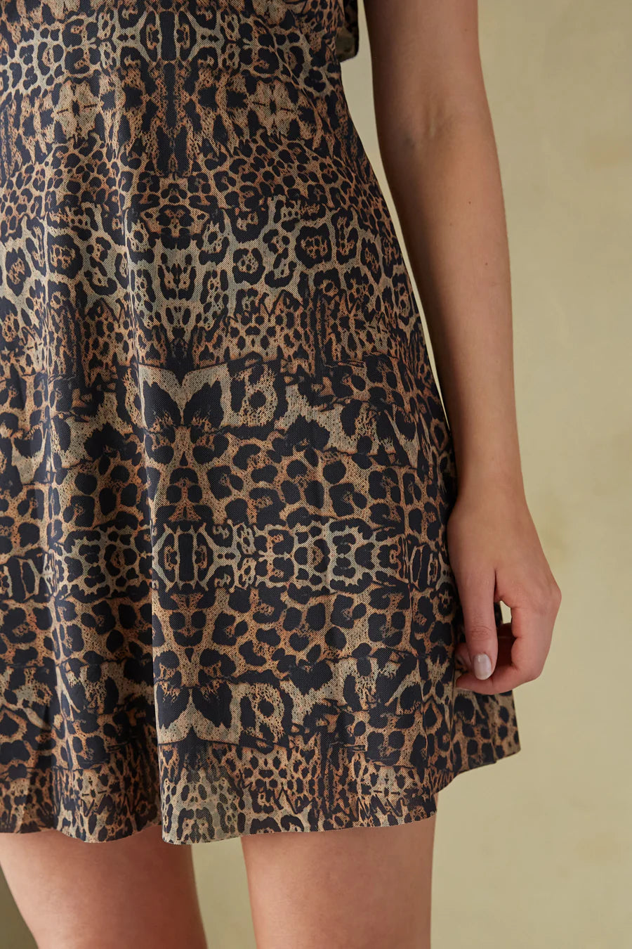 365 party girl, the Jacqueline Ruffle Leopard Print Mini Dress is the ultimate Fall Going Out Dress! This a-line mini dress features ruffle trim, chiffon fabrication, and an open back. Available in Mixed Leopard Print; style with boots for an edgy look!