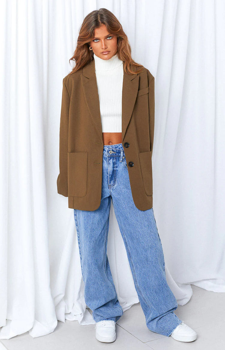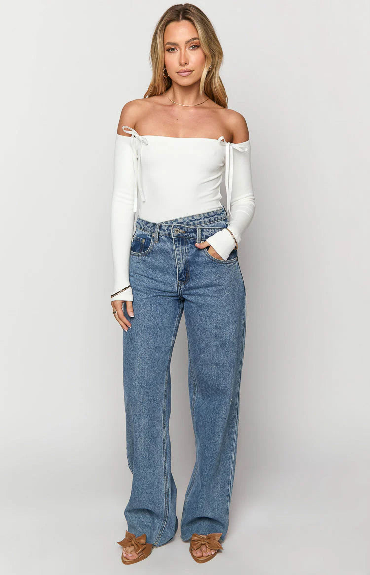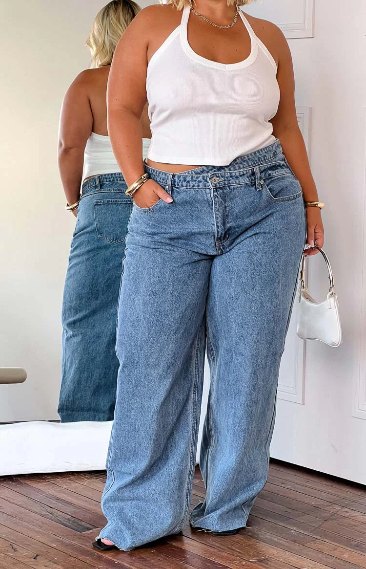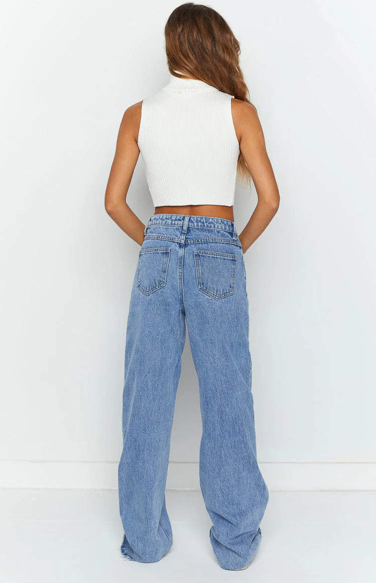 Running down the street in your boyfriend's jeans! This unique pair of denim has us obsessed! Style with a basic white crop and slides for that ultimate relaxed look!