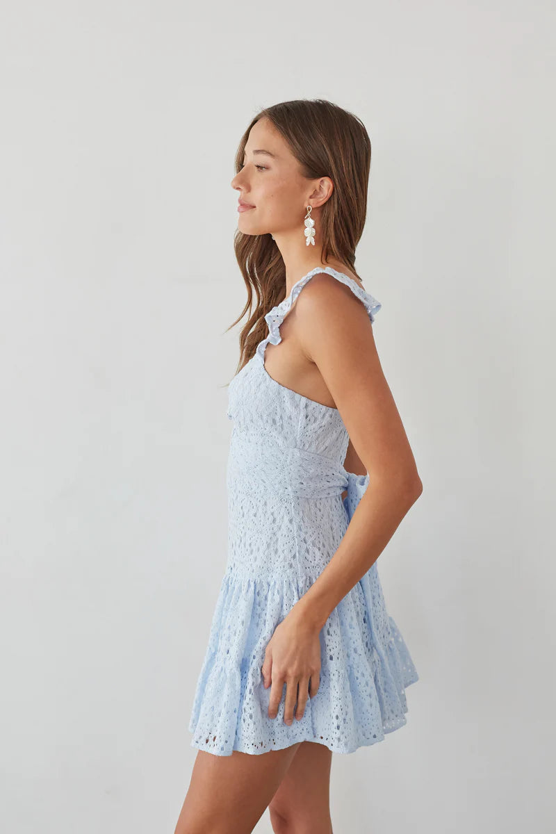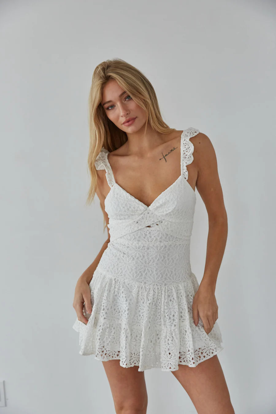 Get ready for a celebration in the Liliana Lace Mini Dress! This stunning dress features a lace design, v neckline, adjustable ruffle straps, keyhole front, and a tiered skirt. Available in white, pink, butter yellow, sky blue, and navy. Pair with your favorite heels to complete the look!