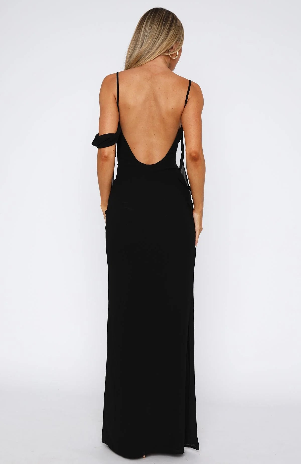 Love is in the air with the Love Blossoms Maxi Dress Black! Featuring thin, adjustable shoulder straps, a cowl neckline, side strap detailing, backless, maxi length, lined, and invisible side zipper and clasp closure. Style with high shine accessories and a kitten heel for a night you won't forget!