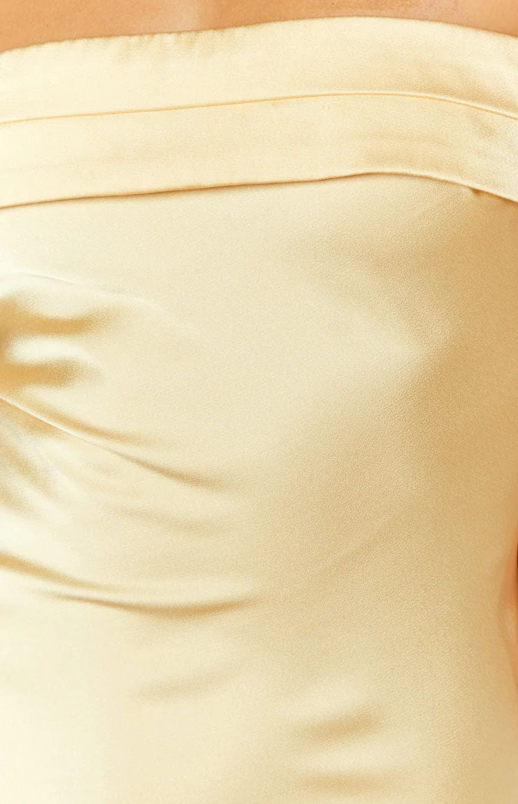 The perfect formal dress for the spring and summer seasons! The stunning pastel yellow adds a pop of colour to this classic strapless maxi dress. Elevate the look with dainty gold jewellery and nude strappy heels.
