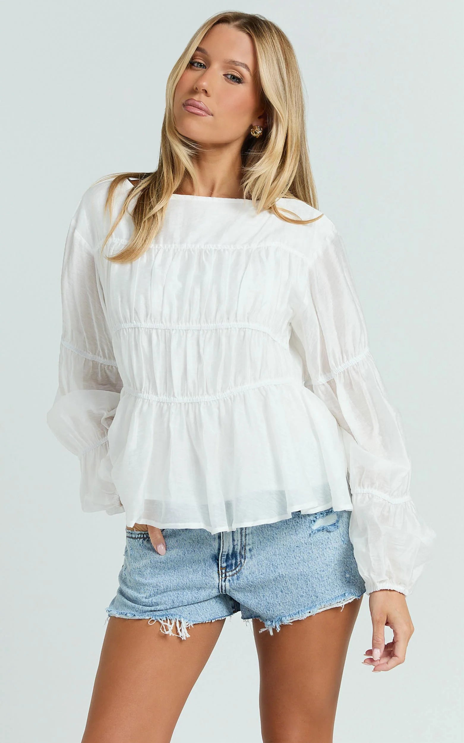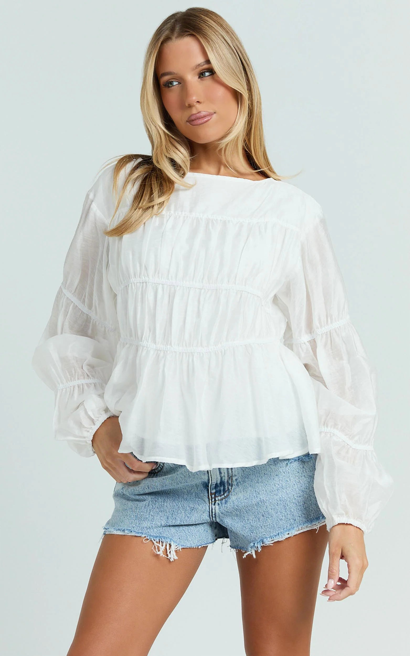 With on-trend bishop sleeves and a soft white hue, Malou Top creates the prettiest silhouette, perfect for pairing with bubble skirts or wide-leg jeans for that eclectic grandma fashion edge everyone’s talking about.