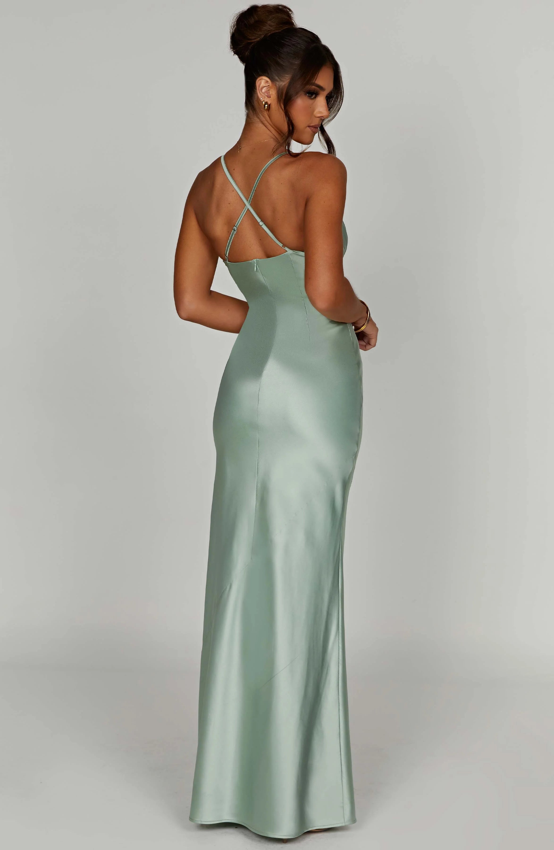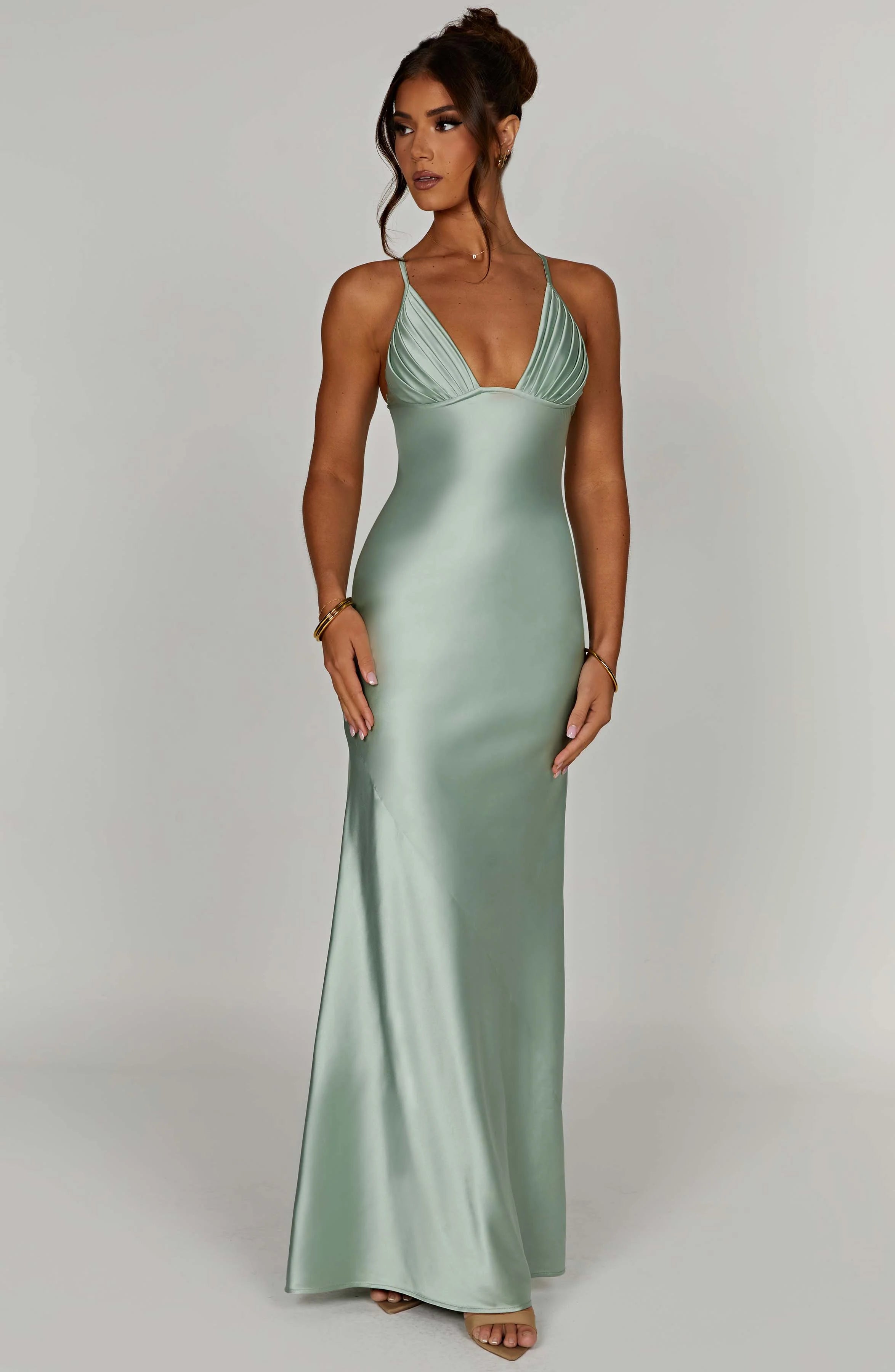 The sleek, sexy lines of Miriam make it the perfect choice for the most special occasions. Crafted from our premium bias cut satin that skims over the figure, this design drapes beautifully at the skirt and skims the floor with a maxi length. The look is is finished with a plunge neckline and pretty pleated cups.ÂÂÂ