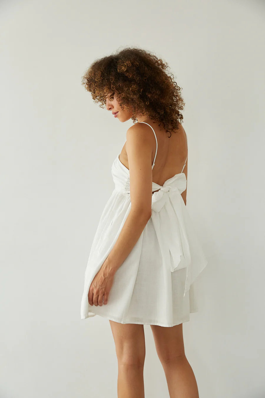 Sure to enamor, the Molly Open Back Babydoll Mini Dress is ready for Back to School! This trendy babydoll dress features a pleated bust, open tie back, and summery linen feel. Available in White and Sage; pair this mini dress with a pair of chic heels to complete the look!