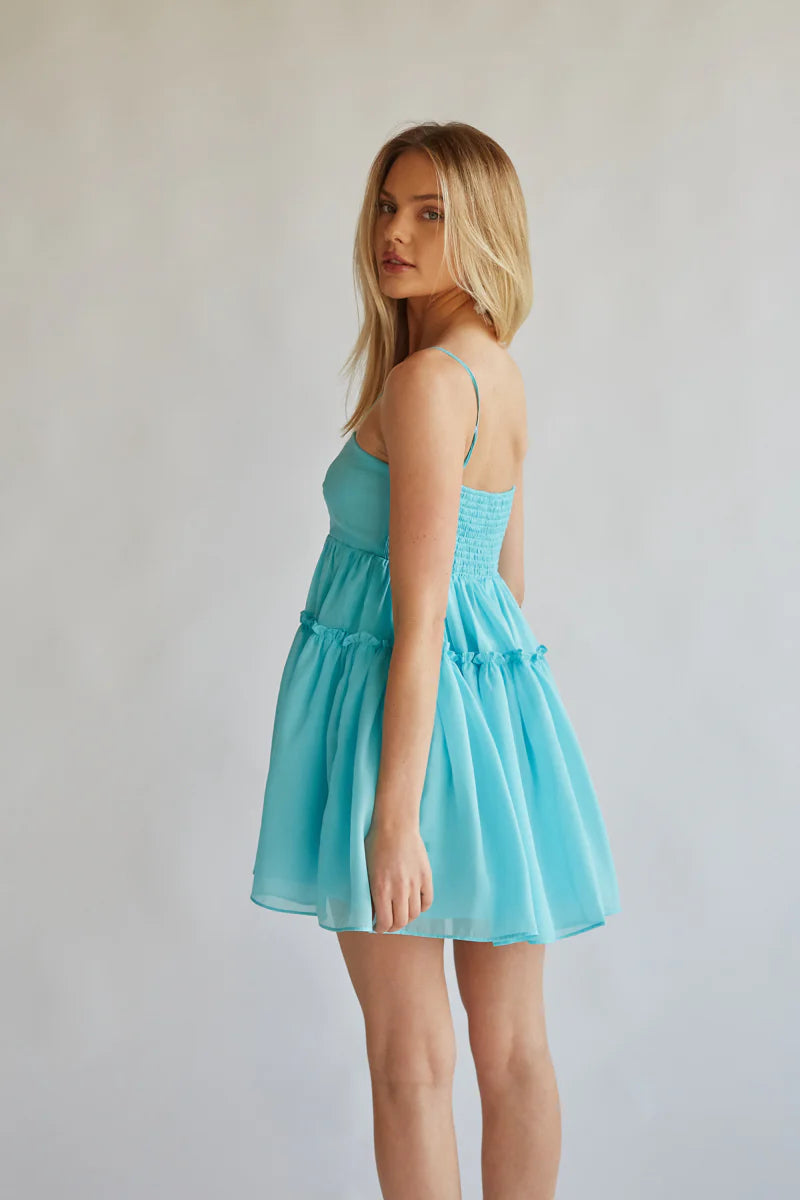 Giving angel energy in the Noah Organza Babydoll Mini Dress! This stunning dress is made of a shimmering organza material and features a straight across neckline, adjustable spaghetti straps, babydoll silhouette, smocked back, and a tiered ruffle detail. to finish off the look!