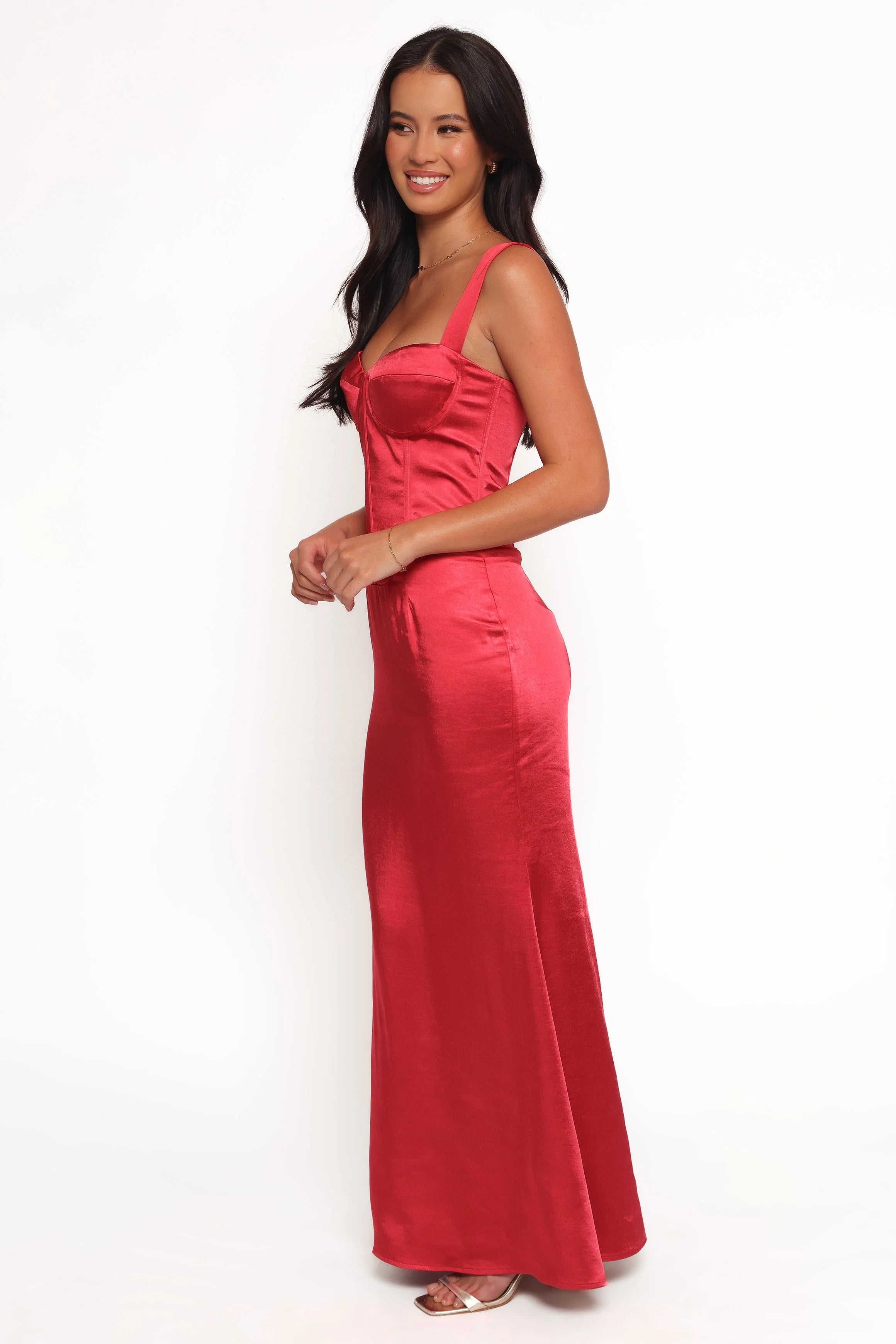 DETAILS Crafted with a soft satin finish that glides over your skin, this dress marries elegance with effortless style. Its maxi length adds a touch of drama, perfect for those evening soirees or upscale events. The sweetheart neckline frames your collarbone beautifully, while the corset-style top with boning provides both structure and allure, highlighting your silhouette.