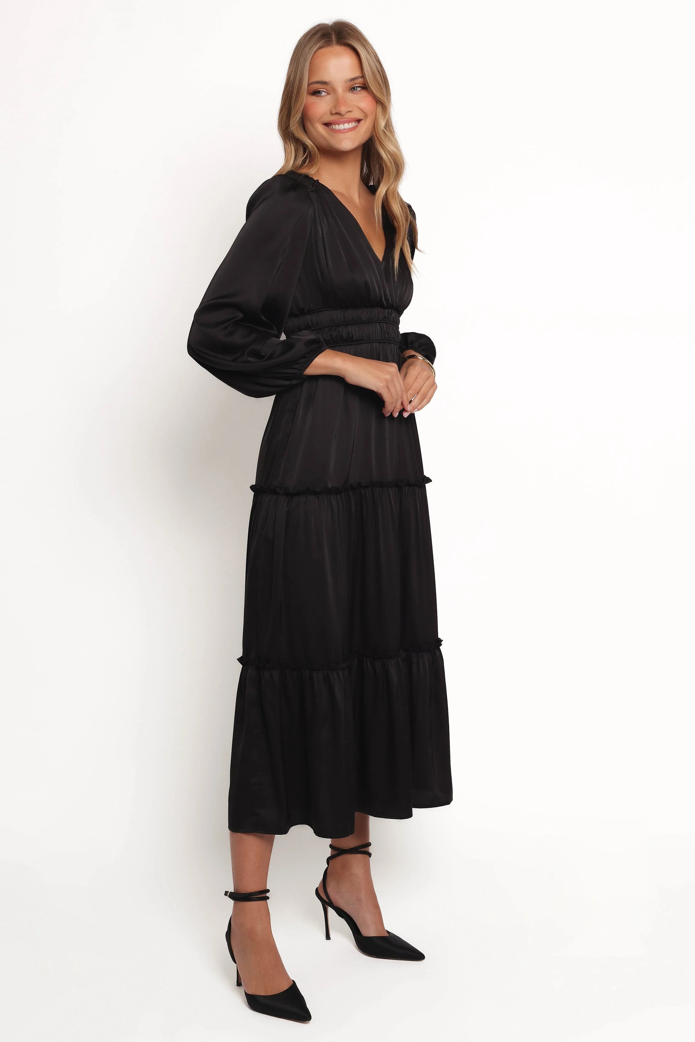 DETAILS Designed with a flowing maxi length that gracefully skims the silhouette, it combines comfort and sophistication perfectly. The v-neckline adds a touch of modern femininity, while the long sleeves with elasticised cuffs bring a polished yet casual vibe.