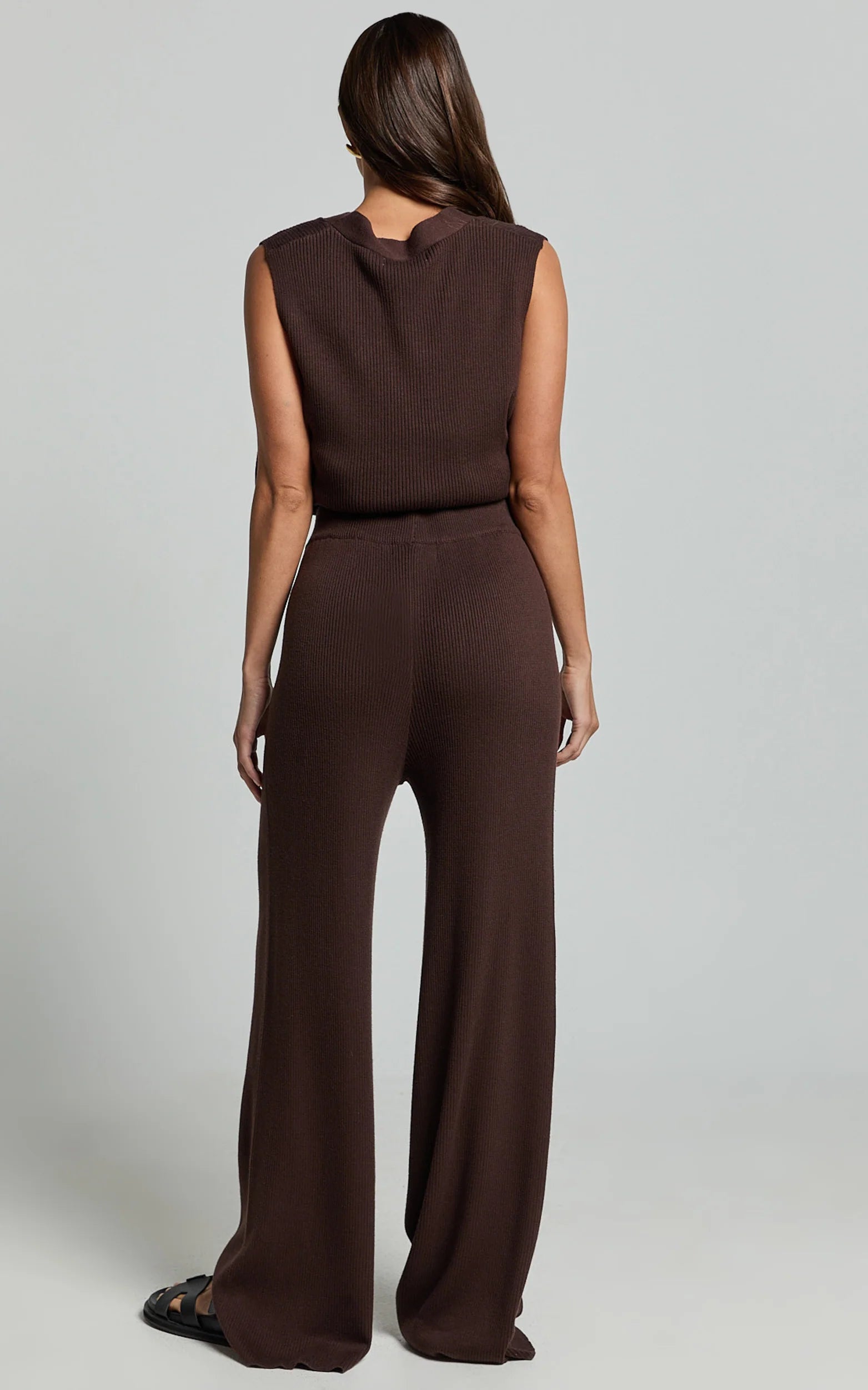 Embrace warmth and undeniable style with our Sasha Pants - the ultimate knitted high waist, wide-leg pants in a luscious chocolate shade that you've been dreaming of. Crafted meticulously from a cozy, fully fashioned knit acrylic, these pants are not just about comfort; they're a statement of your unique style and confidence.