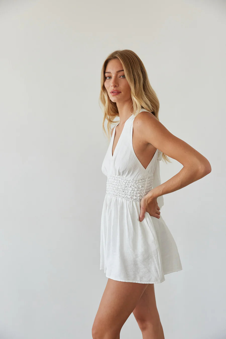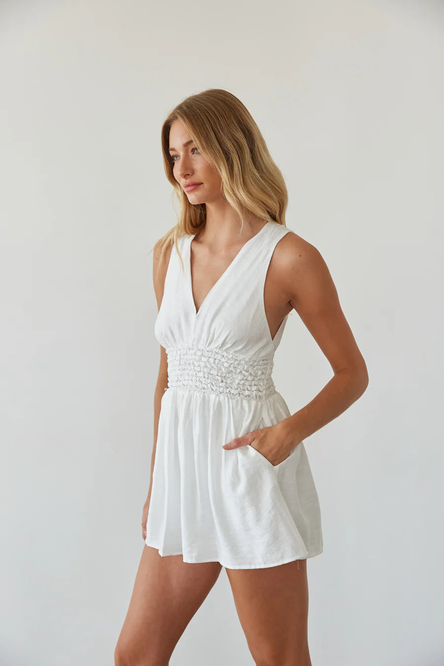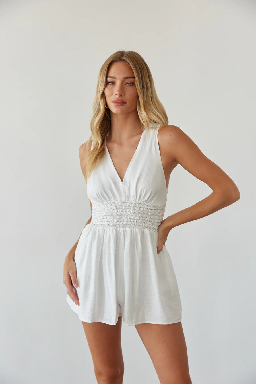 No such thing as summertime sadness in the Skyla Tie Back Romper! This adorable romper features a V-neckline, elastic smocked waist, and an open back tie detail. Finish off the look with your favorite accessories!