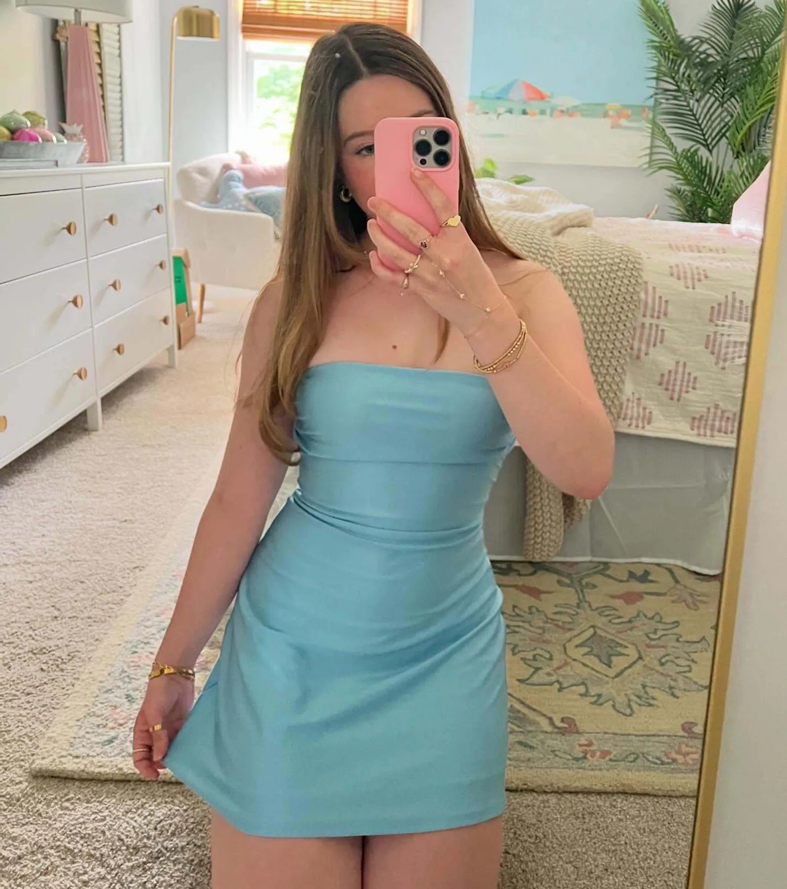 This adorable strapless A-line mini dress is so your vibe! Designed with a stretchy lined knit fabric, it features a strapless straight-across neckline, chic pleated detailing at the bust, and a flirty flowy A-line silhouette on the mini-length hem. Style for a girl's night with statement earrings and strappy mules.