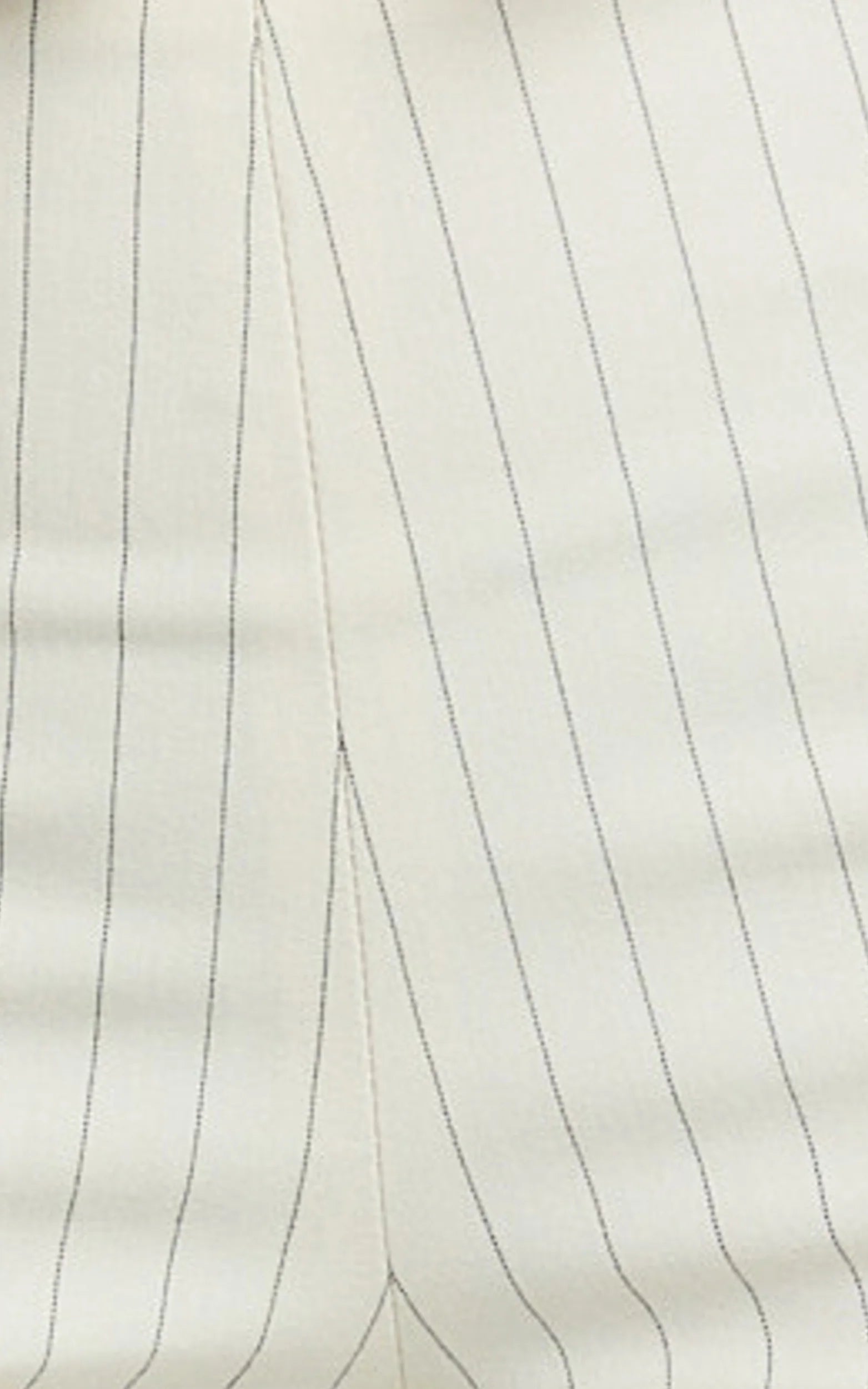 Featuring a cream pinstripe design, these fitted capri pants offer a flattering high-rise waist and chic side-split leg detailing, perfectly blending preppy sophistication with nostalgic Y2K flair.