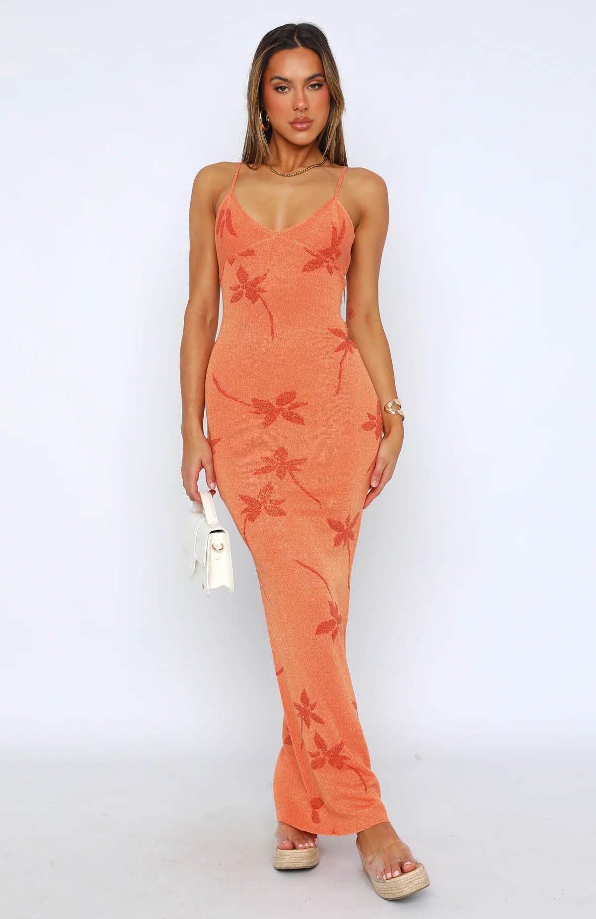 The perfect summer slip dress that does all the talking, fits in all the right places and as comfortable as ever! The Trust Issues Maxi Dress Orange features thin, adjustable strap, low back design and unlined, gorgeous knit fabric. Complete the look with clear mules and gold accessories for a look that we love!