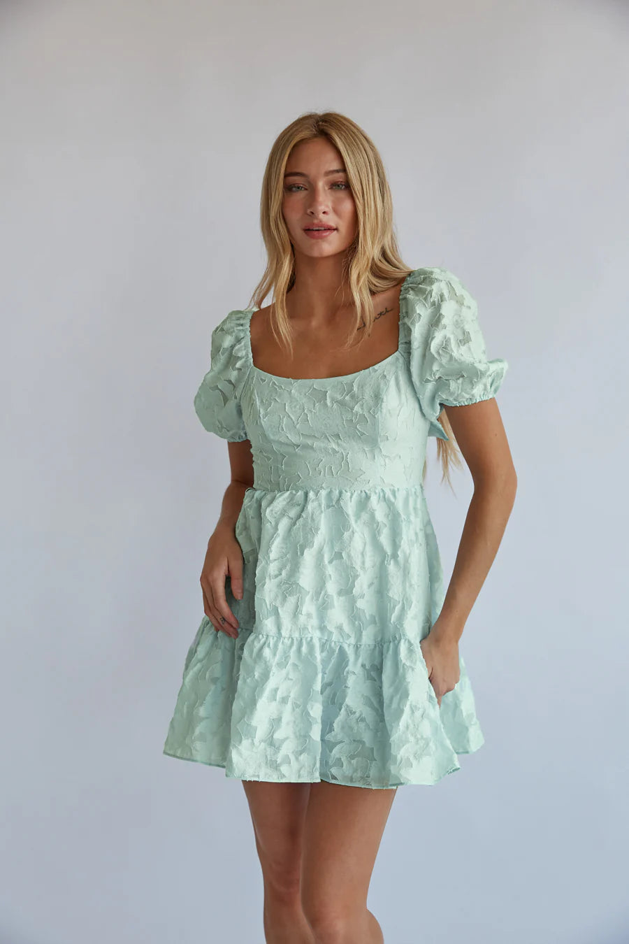 You'll look simply stunning in the Whitley Tie Back Puff Sleeve Babydoll Mini Dress! This feminine babydoll dress features a chic floral design, square neckline, tiered skirt, and two back tie details. Pair with a classic heel to finish off the look!